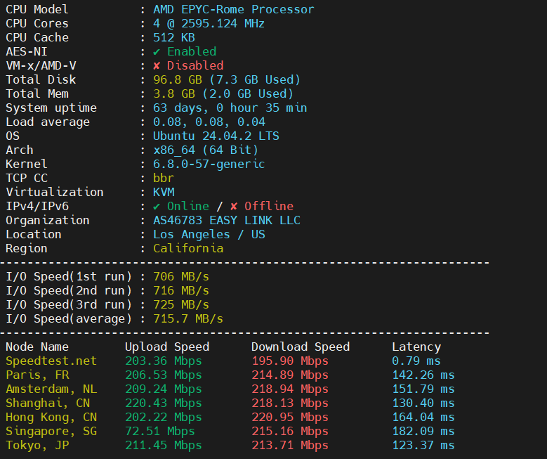This script was developed by the well-known community expert 秋水逸冰 (Teddysun). It is a highly comprehensive tool that performs Disk I/O testing three times and calculates the average for accuracy. Additionally, it supports IPv6 download speed tests, providing a well-rounded evaluation of your server's capabilities.